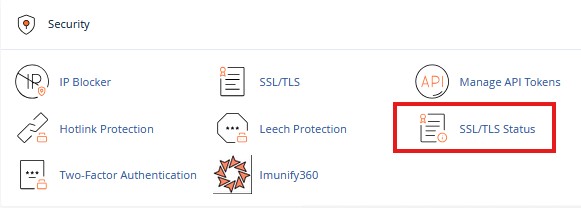 - Log into your cPanel account and navigate to SSL/TLS Status in the Security section.